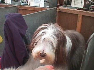 Sadie and Wesley as youngsters trying the Crufts Cup on for size